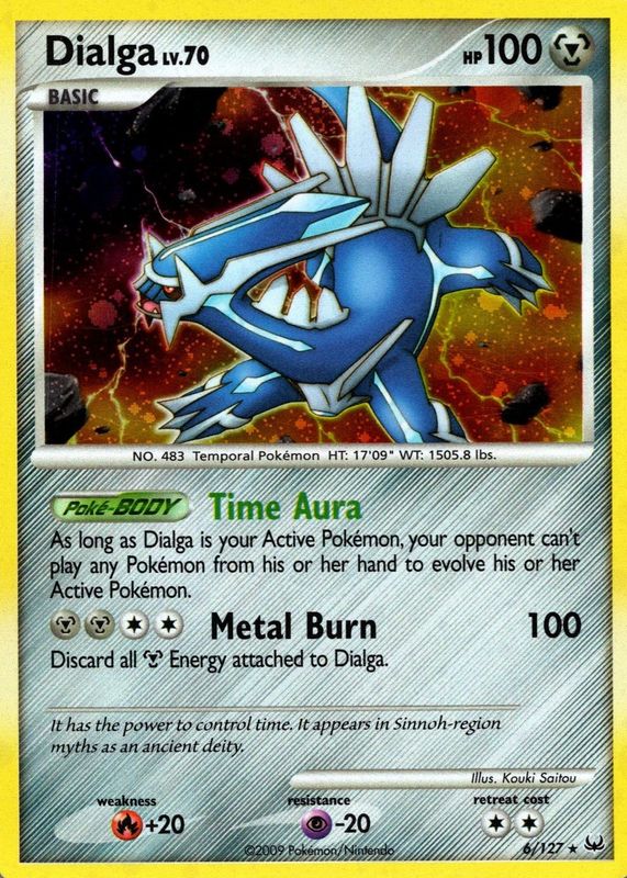 The Dialga 2009 Platinum #006/127 Holo card in Raw TCG (Near Mint) condition has moved up $5.96 (+59.7%) in the last 30 days and was last sold for $15.95 .