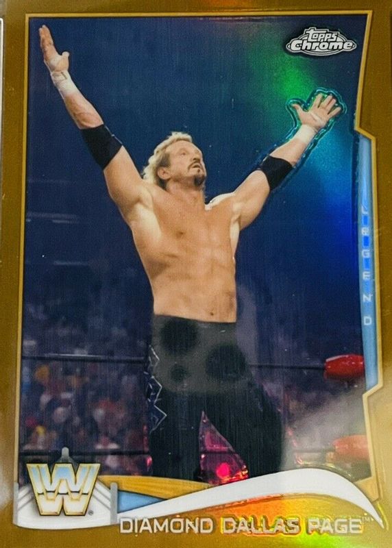 The Diamond Dallas Page 2014 Topps Chrome WWE #99 Gold Refractor /50 card in Raw condition has not changed in price in the last 30 days and was last sold for $70.00 .