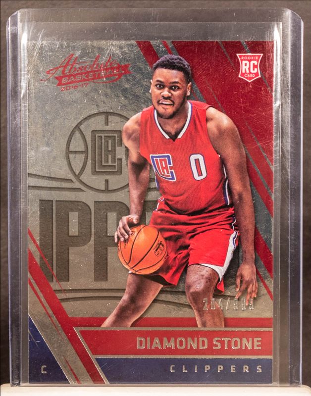 The Diamond Stone 2016 Absolute #193 Base /999 Rookie card is 1 of 33 Diamond Stone's card variations in the 2016 Absolute set being tracked by Sports Card Investor, including Spectrum Gold /10, Spectrum Black /1, Tools of the Trade Jumbo Rookie - Materials /149, Tools of the Trade Rookie Materials Dual Relic /149, and Tools of the Trade Rookie Materials Triple Relic /149.