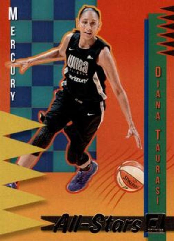 The Diana Taurasi 2019 Donruss WNBA #14 All Stars card is 1 of 44 Diana Taurasi's card variations in the 2019 Donruss WNBA set being tracked by Sports Card Investor, including Base, Optic, Optic Holo, Silver Press Proof /199, and Purple Press Proof /99.