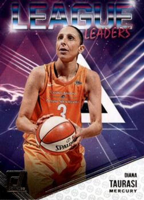 The Diana Taurasi 2019 Donruss WNBA #6 League Leaders card is 1 of 44 Diana Taurasi's card variations in the 2019 Donruss WNBA set being tracked by Sports Card Investor, including Base, Optic, Optic Holo, Silver Press Proof /199, and Purple Press Proof /99.