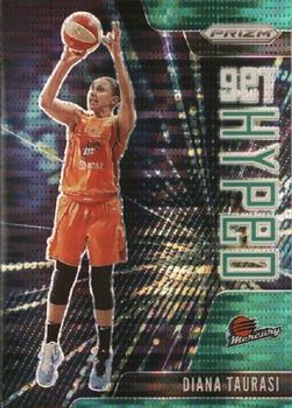 The Diana Taurasi 2021 Prizm WNBA #3 Get Hyped - Green Pulsar /25 card is 1 of 72 Diana Taurasi's card variations in the 2021 Prizm WNBA set being tracked by Sports Card Investor, including Base, Green, Green Ice, Hyper, and Ice.
