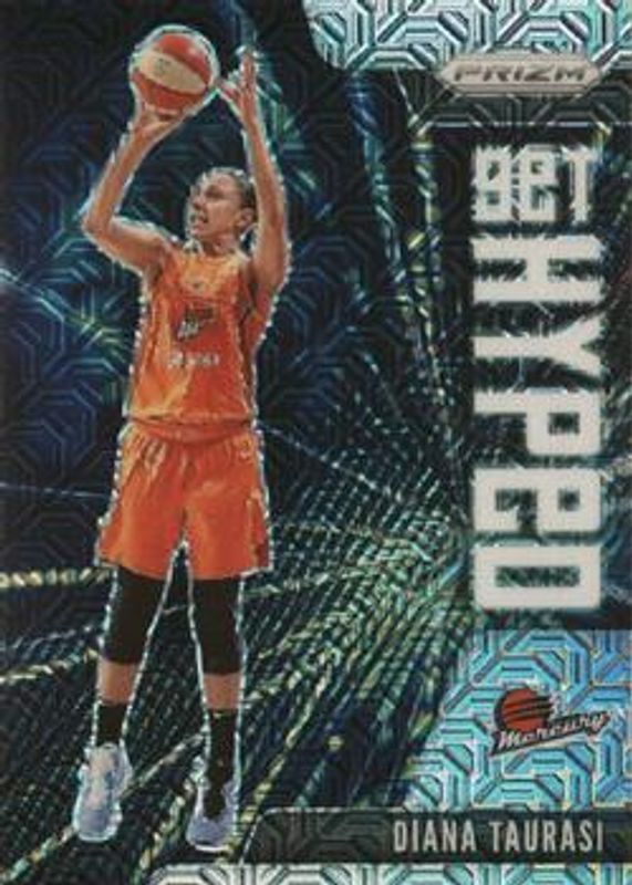 The Diana Taurasi 2021 Prizm WNBA #3 Get Hyped - Mojo /25 card is 1 of 72 Diana Taurasi's card variations in the 2021 Prizm WNBA set being tracked by Sports Card Investor, including Base, Green, Green Ice, Hyper, and Ice.