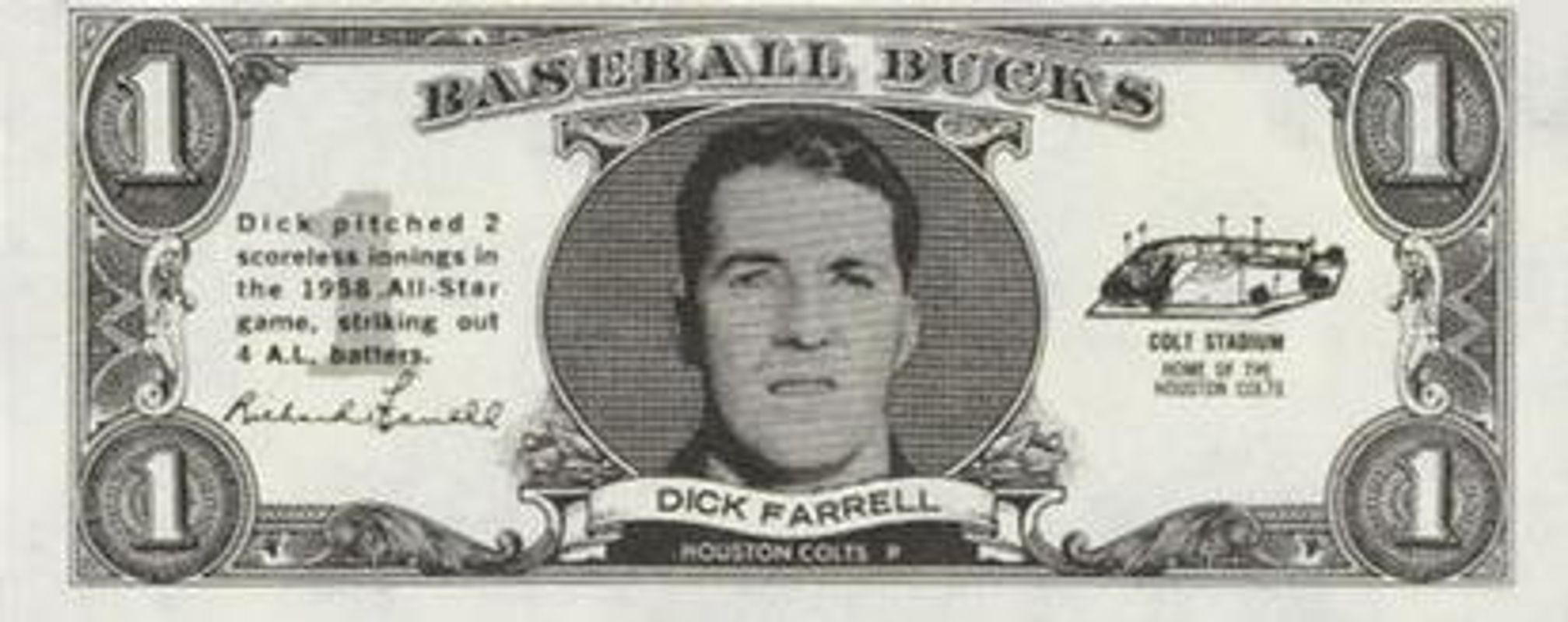 Dick Farrell 1962 Topps Baseball Bucks Base RAW Price Guide