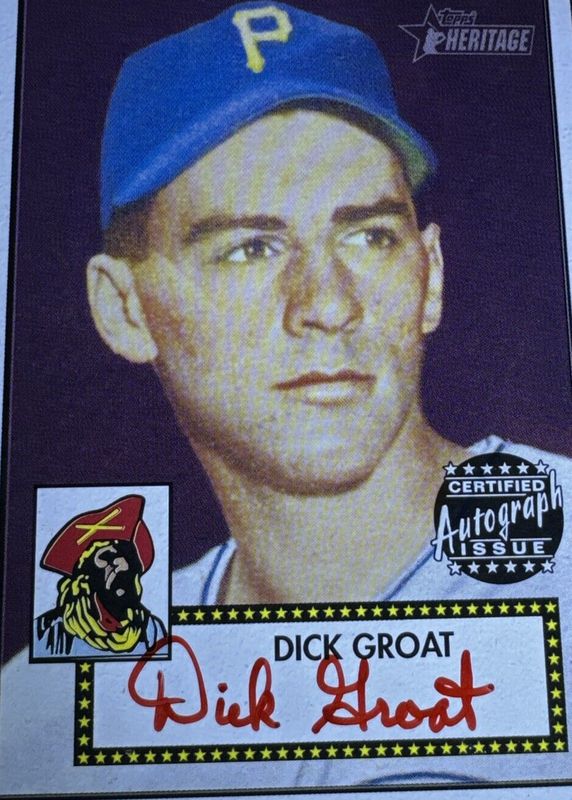 The Dick Groat 2001 Topps Heritage #THA-DG Real One Autographs - Red Ink /52 card in Raw condition has not changed in price in the last 30 days and was last sold for $120.51 .