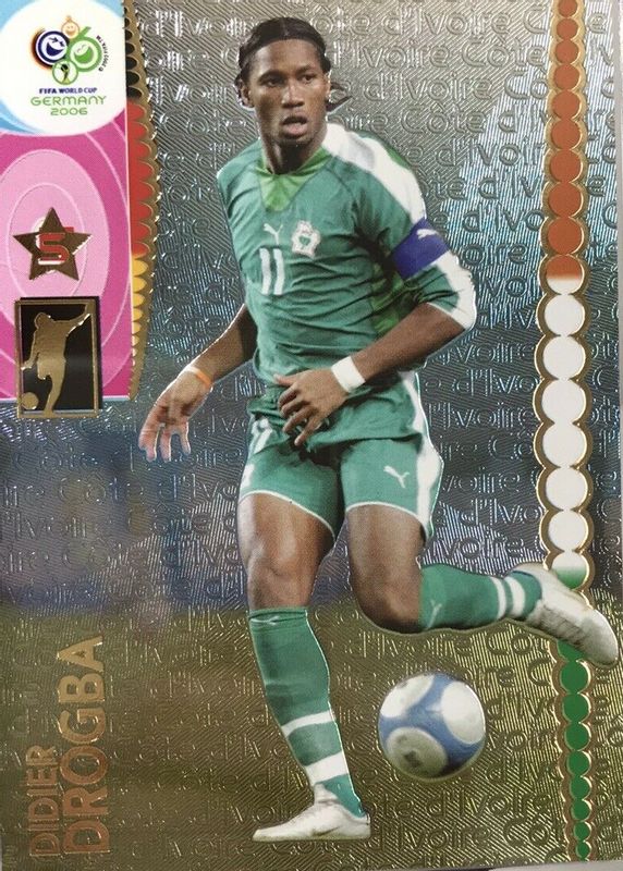Didier Drogba's Soccer cards are available in at least 73 sets. Didier Drogba's biggest 7-day price movers are 2006 Panini World Cup Base, 2022 Topps Chrome MLS #FT-2 Field Tested - Orange /25, and 2022 Topps Chrome MLS #FT-2 Field Tested - SuperFractor /1.
