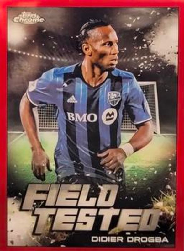 The Didier Drogba 2022 Topps Chrome MLS #FT-2 Field Tested - Red /5 card is 1 of 7 Didier Drogba's card variations in the 2022 Topps Chrome MLS set being tracked by Sports Card Investor, including Field Tested, Field Tested - Aqua /99, Field Tested - Green /75, Field Tested - Gold /50, and Field Tested - Orange /25.