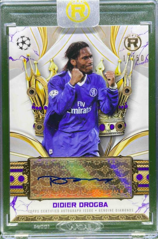 Didier Drogba 2024 Topps Reverence UEFA Club Competitions #CLAR-DD Crowned Legend Autographed Jewel Relics - Purple /50 RAW Price Guide