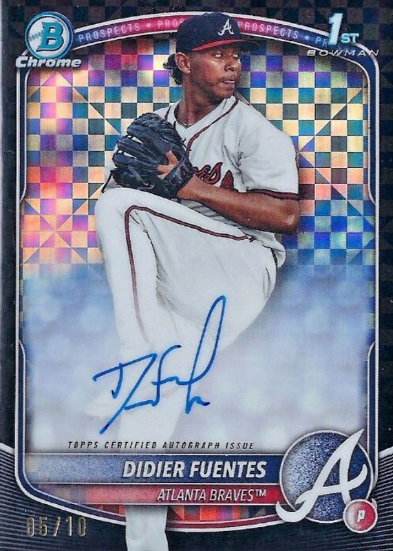 Didier Fuentes 2025 Bowman #CPA-DFU Chrome Prospect Auto - Black X-Fractor /10 (1st) RAW Price Guide