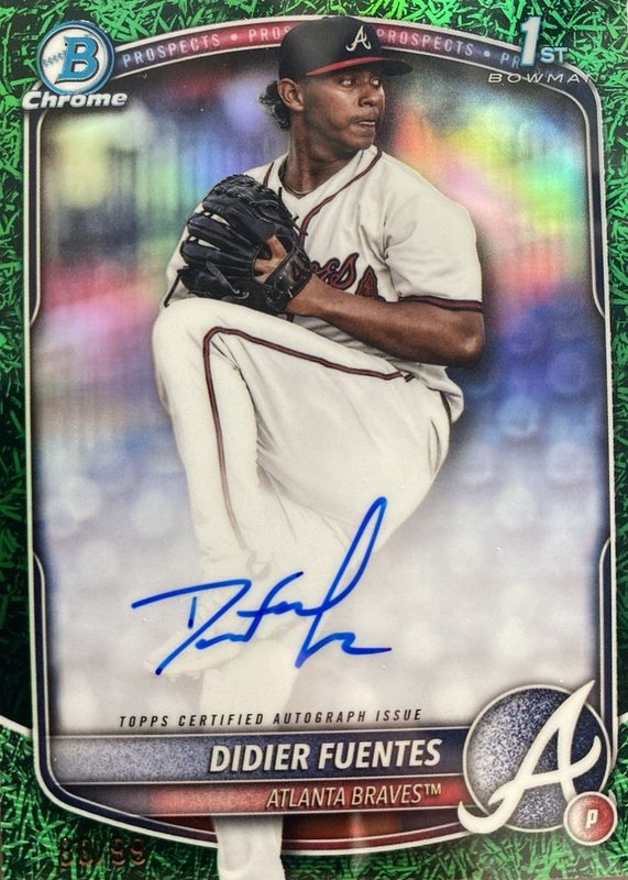 2025 Bowman 1st Chrome DIDIER FUENTES Braves GREEN GRASS Refractor Auto 09/99