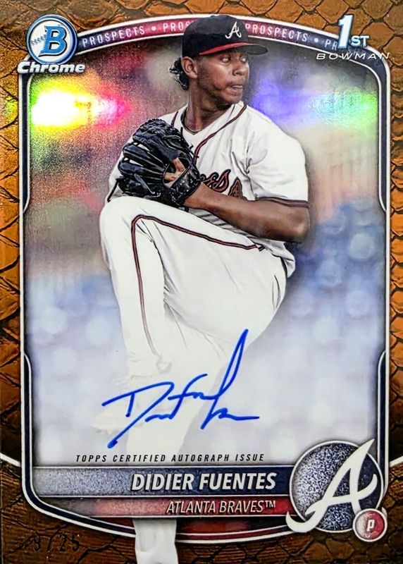 2025 Bowman Chrome Didier Fuentes Orange Reptilian 1st Auto /25 #CPA-DFU BRAVES