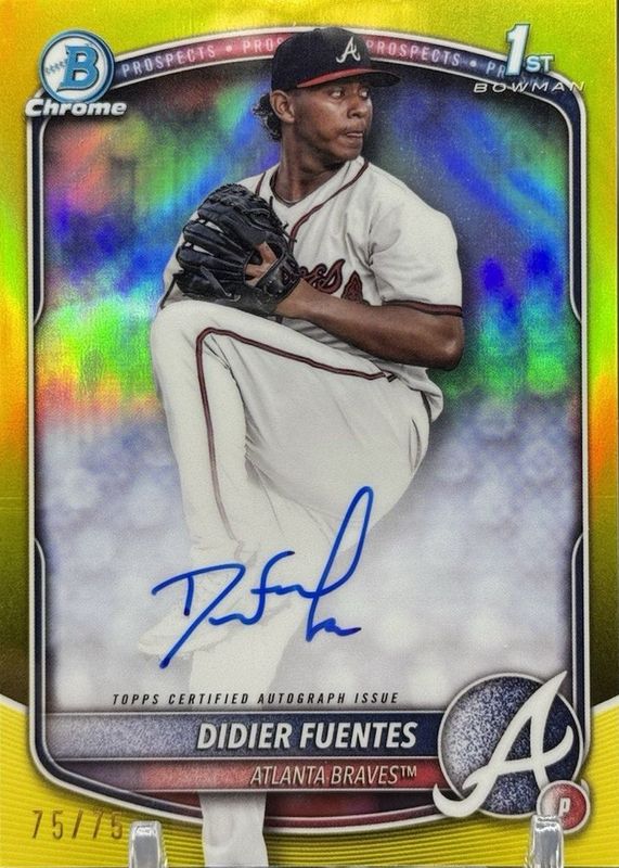 Didier Fuentes 2025 Bowman #CPA-DFU Chrome Prospect Auto - Yellow Refractor /75 (1st) RAW Price Guide