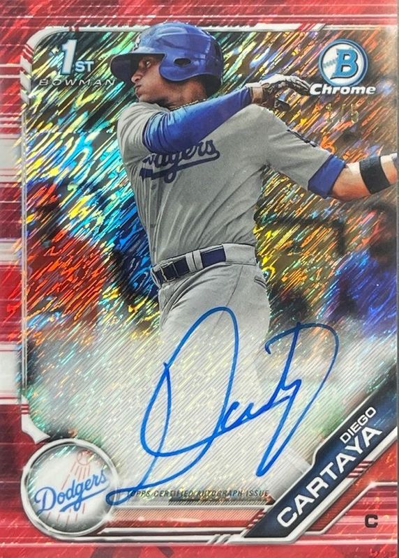 Diego Cartaya 2019 Bowman #CPA-DCA Chrome Prospect Auto - Red Shimmer Refractor /5 (1st) RAW Price Guide
