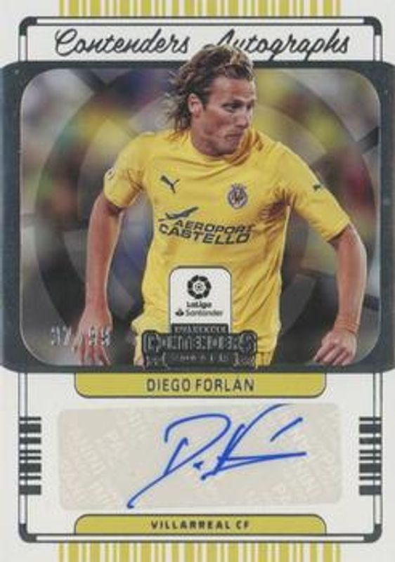 The Diego Forlan 2022 Chronicles #CA-DF Contenders Autographs La Liga - Silver /25 card is 1 of 4 Diego Forlan's card variations in the 2022 Chronicles set being tracked by Sports Card Investor, including Contenders Autographs La Liga /64, Contenders Autographs La Liga - Gold /10, and Contenders Autographs La Liga - Platinum /1.
