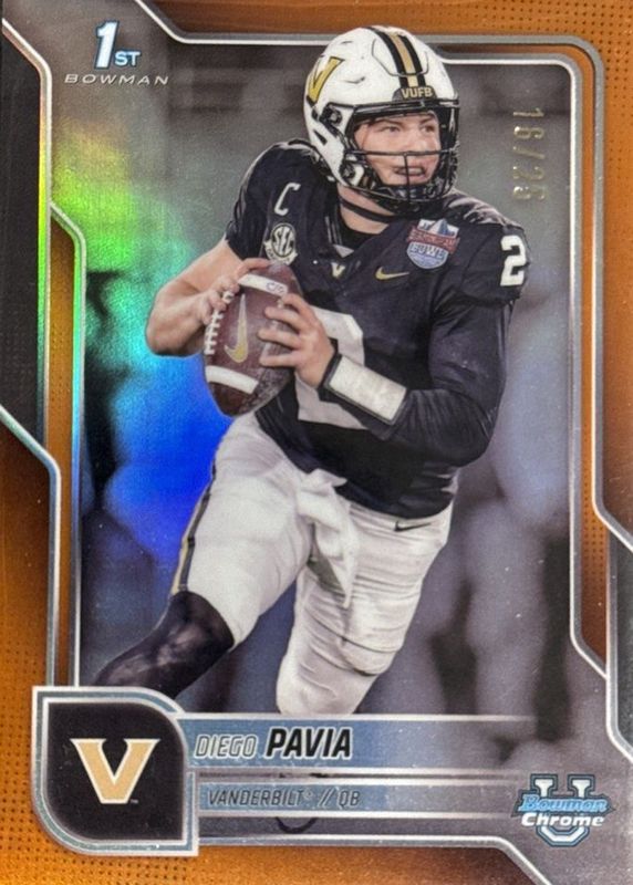 Best Prices Available For Sale of Diego Pavia 2025 Bowman Chrome University #190 Orange Refractor /25 (1st)