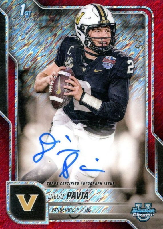 Diego Pavia 2025 Bowman Chrome University #BCA-DPA Prospect Auto - Red Shimmer Refractor /5 (1st) RAW Price Guide