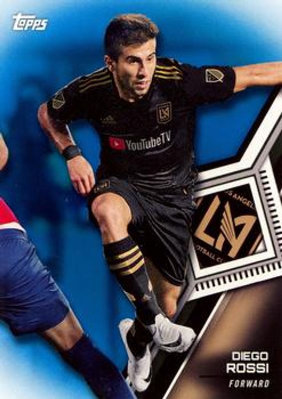 The Diego Rossi 2018 Topps MLS #41 Blue /99 Rookie card is 1 of 11 Diego Rossi's card variations in the 2018 Topps MLS set being tracked by Sports Card Investor, including Base, 10x14 /99, 5x7 /49, Orange /25, and 5x7 Gold /10.