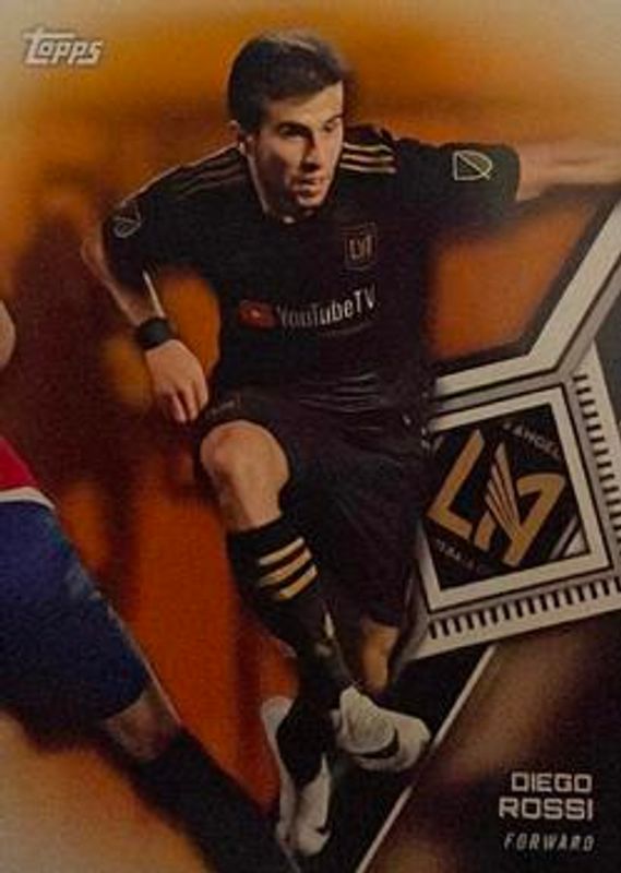The Diego Rossi 2018 Topps MLS #41 Orange /25 Rookie card is 1 of 11 Diego Rossi's card variations in the 2018 Topps MLS set being tracked by Sports Card Investor, including Base, 10x14 /99, Blue /99, 5x7 /49, and 5x7 Gold /10.
