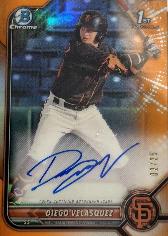 Diego Velasquez 2022 Bowman Chrome #CPA-DV Prospect Auto - Orange Refractor /25 (1st) RAW Price Guide