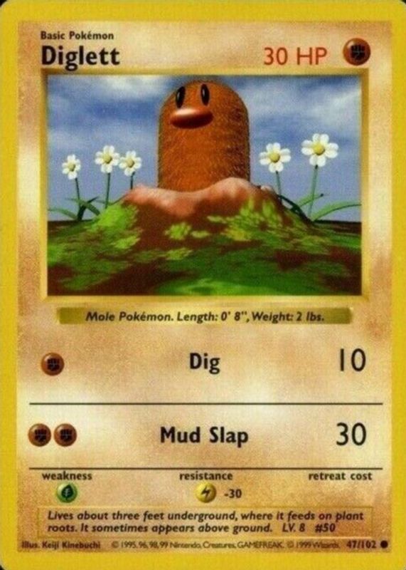 Diglett 47/102 - Pokemon TCG Base Set (1999) - MP - Unlimited - Shadowless