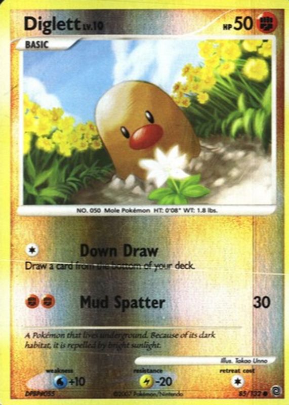 The Diglett 2007 Diamond & Pearl: Secret Wonders #085/132 Reverse Holo card in Raw TCG (Lightly Played) condition has not changed in price in the last 30 days and was last sold for $2.00 .