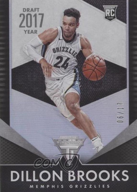 The Dillon Brooks 2017 Chronicles #224 Titanium Draft Year /17 Rookie card in Raw condition has not changed in price in the last 30 days and was last sold for $6.50 .