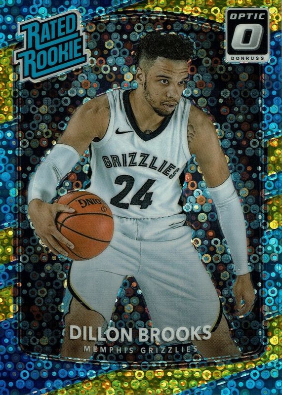 The Dillon Brooks 2017 Optic #152 Fast Break Gold /10 Rookie card in Raw condition has not changed in price in the last 30 days and was last sold for $88.98 .