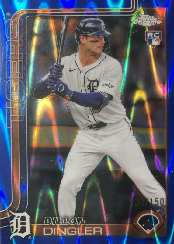 Dillon Dingler 2025 Topps Chrome Blue RayWave Refractor 28/150 #274 RC Tigers SP
