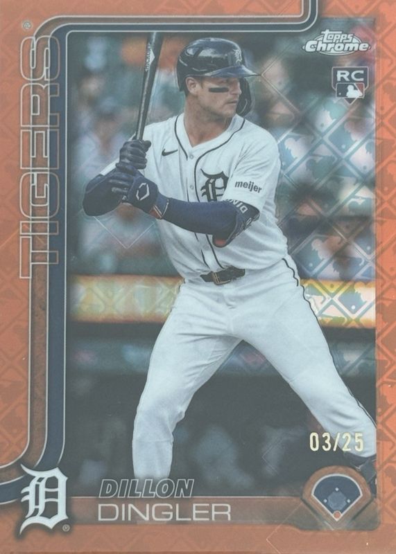 This card is 1 of 19 Dillon Dingler's card variations in the 2025 Topps Chrome Logofractor Edition set being tracked by Sports Card Investor, including Base, Purple Refractor /250, Aqua Refractor /199, Blue Refractor /150, and Green Refractor /99.