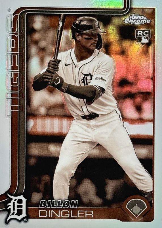The Dillon Dingler 2025 Topps Chrome #274 Sepia Refractor Rookie card in Raw condition has moved up $0.19 (+17.9%) in the last 30 days and was last sold for $1.25 .