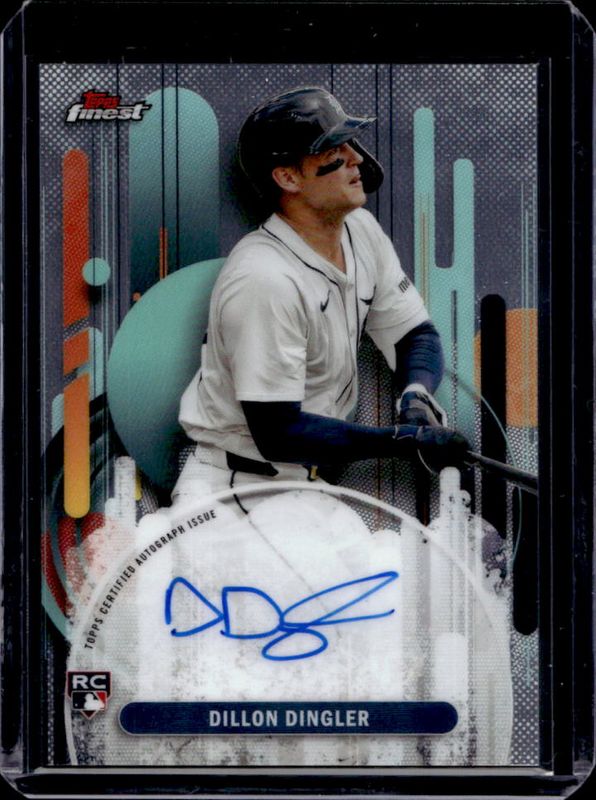 The Dillon Dingler 2025 Topps Finest #FA-DD Finest Autographs Rookie card is 1 of 45 Dillon Dingler's card variations in the 2025 Topps Finest set being tracked by Sports Card Investor, including Rare, Rare - Checkerboard Refractor, Rare - Refractor, Rare - Magenta Refractor /200, and Rare - Sky Blue Refractor /150.