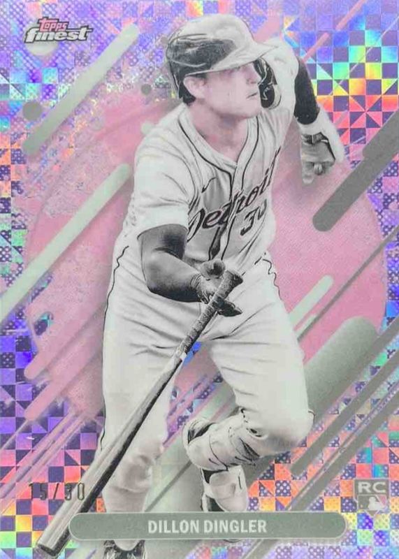 This card is 1 of 45 Dillon Dingler's card variations in the 2025 Topps Finest set being tracked by Sports Card Investor, including Rare, Rare - Checkerboard Refractor, Rare - Refractor, Rare - Magenta Refractor /200, and Rare - Sky Blue Refractor /150.