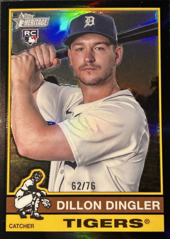 DILLON DINGLER 2025 TOPPS HERITAGE ROOKIE BLACK CHROME #130 RC /76 Q1001