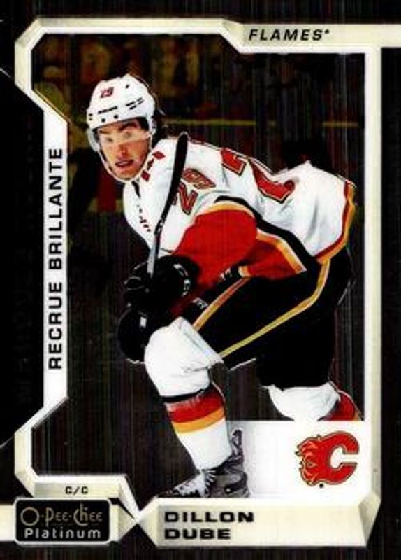 The Dillon Dube 2018 O-Pee-Chee Platinum #156 Base Rookie card is 1 of 22 Dillon Dube's card variations in the 2018 O-Pee-Chee Platinum set being tracked by Sports Card Investor, including Rainbow, Violet Pixels, Red Prism /199, Arctic Freeze /79, and Seismic Gold /50.