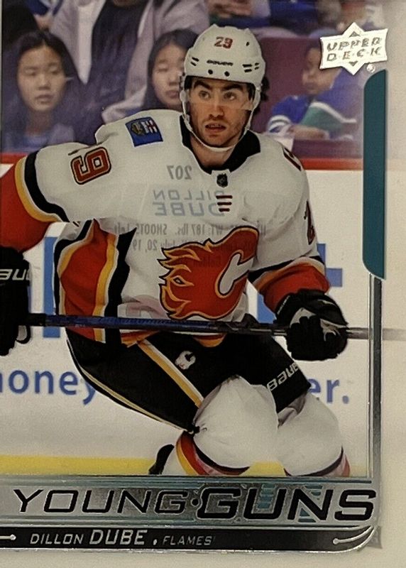 This card is 1 of 28 Dillon Dube's card variations in the 2018 Upper Deck set being tracked by Sports Card Investor, including Young Guns Base, Young Guns Canvas, Young Guns - Jumbo, Young Guns - Silver Foil, and Young Guns - Speckled Rainbow Foil.