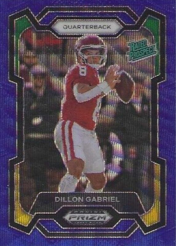 This card is 1 of 44 Dillon Gabriel's card variations in the 2024 Prizm Draft Picks set being tracked by Sports Card Investor, including Base, Green, Purple Wave, Red Ice, and Ruby Wave.