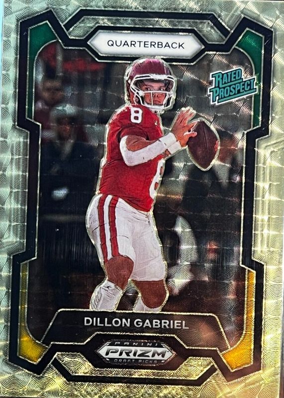 This card is 1 of 44 Dillon Gabriel's card variations in the 2024 Prizm Draft Picks set being tracked by Sports Card Investor, including Base, Green, Purple Wave, Red Ice, and Ruby Wave.