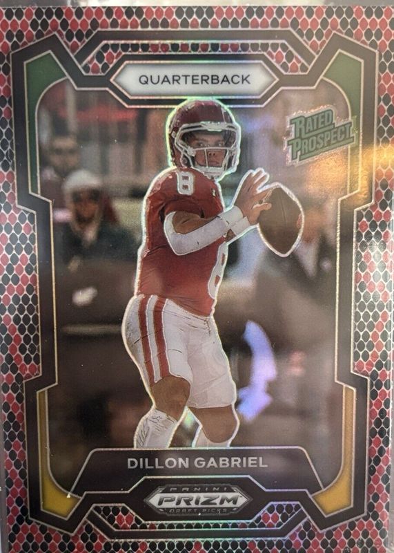 The Dillon Gabriel 2024 Prizm Draft Picks #197 Snakeskin /(SSP) card in Raw condition has not changed in price in the last 30 days and was last sold for $9.99 .