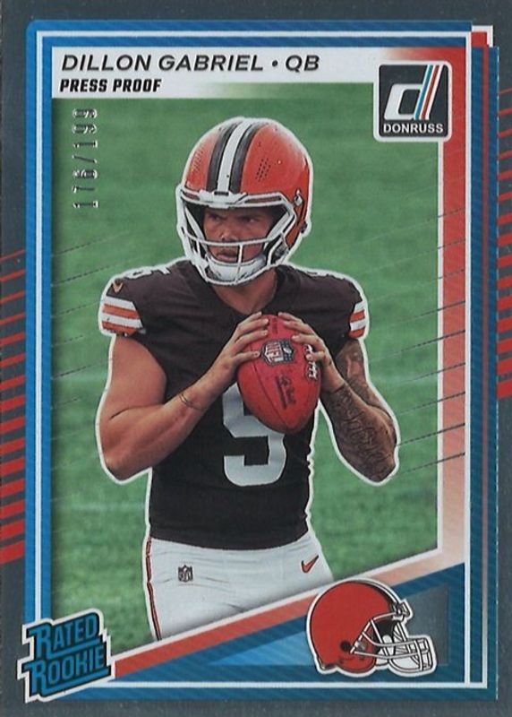 2025 Donruss Dillon Gabriel Rated Rookie Press Proof Silver RC #1/199 Browns