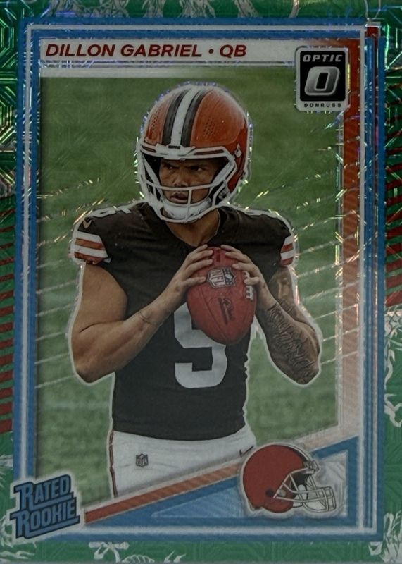 This card is 1 of 86 Dillon Gabriel's card variations in the 2025 Optic set being tracked by Sports Card Investor, including Base, Blue Hyper, Blue Scope, Green Hyper, and Green Velocity.