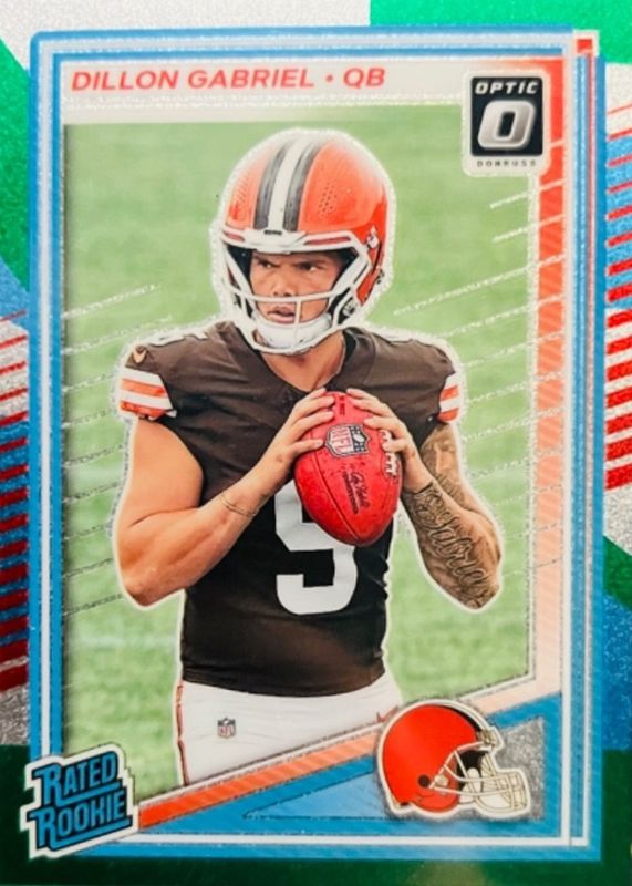 The Dillon Gabriel 2025 Optic #263 Jazz /(SSP) Rookie card in Raw condition has not changed in price in the last 30 days and was last sold for $7.50 .