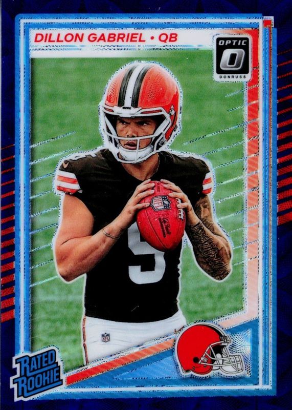 The Dillon Gabriel 2025 Optic #263 Purple Scope Rookie card in Raw condition has moved up $1.82 (+154%) in the last 30 days and was last sold for $3.00 .