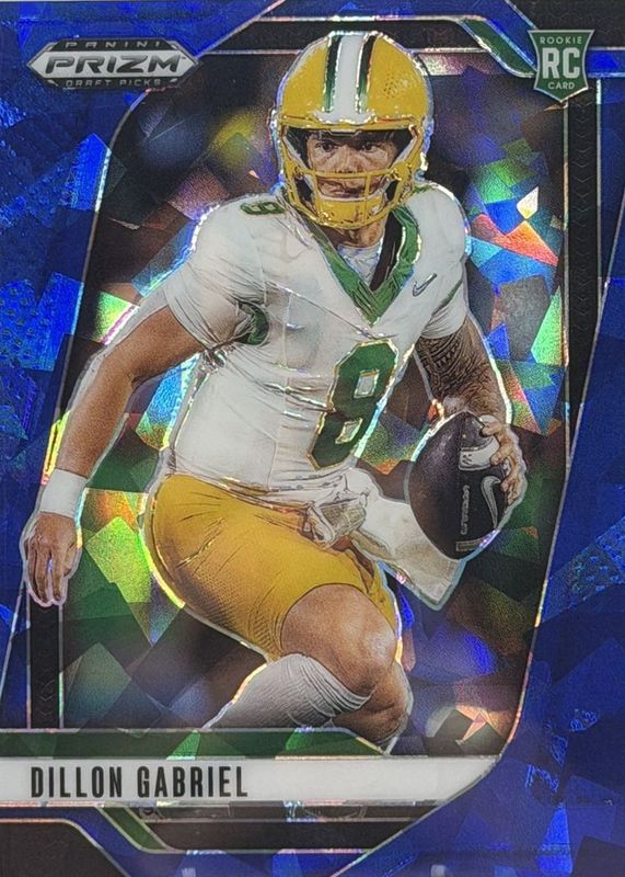 The Dillon Gabriel 2025 Prizm Draft Picks #97 Blue Ice /149 Rookie card in Raw condition has not changed in price in the last 30 days and was last sold for $0.99 .