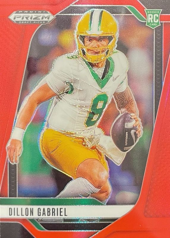 The Dillon Gabriel 2025 Prizm Draft Picks #97 Red /399 Rookie card in Raw condition has moved up $0.50 (+33.3%) in the last 30 days and was last sold for $2.00 .
