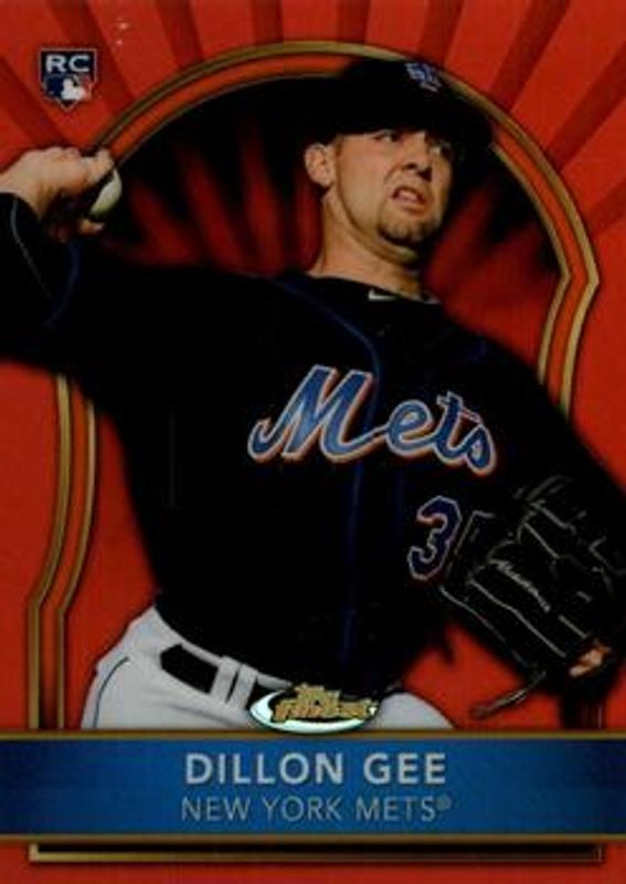 The Dillon Gee 2011 Topps Finest #79 Red Refractor /25 Rookie card is 1 of 43 Dillon Gee's card variations in the 2011 Topps Finest set being tracked by Sports Card Investor, including Base, Refractor /549, X-Fractor /299, Green Refractor /199, and Orange Refractor /99.