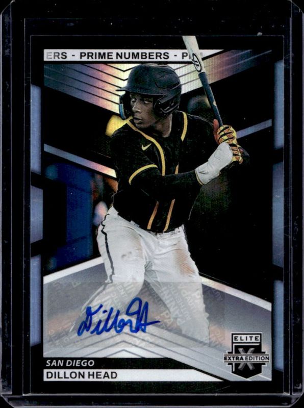 The Dillon Head 2023 Elite Extra Edition #88 Prime Numbers A Signatures /200 card is 1 of 77 Dillon Head's card variations in the 2023 Elite Extra Edition set being tracked by Sports Card Investor, including Base, Pink, Signatures, Status Green /499, and Signatures die-cut /399.