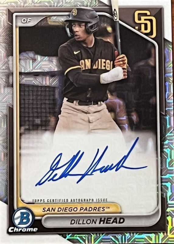 2024 BOWMAN CHROME MEGA DILLON HEAD PROSPECT AUTO MOJO REFRACTOR #BMA-DH PADRES