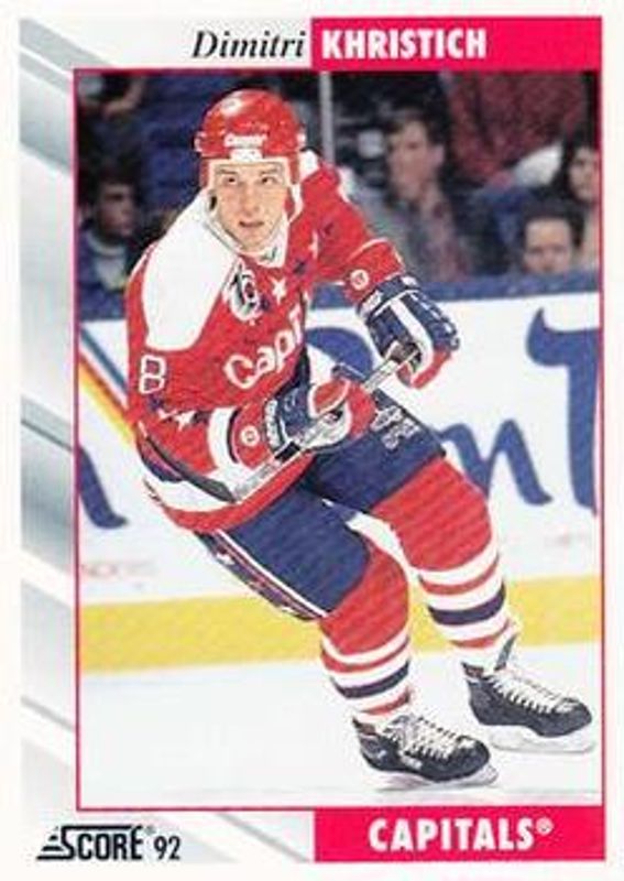 The Dimitri Khristich 1992 Score #33 Base card is 1 of 2 Dimitri Khristich's card variations in the 1992 Score set being tracked by Sports Card Investor, including Sharp Shooters.