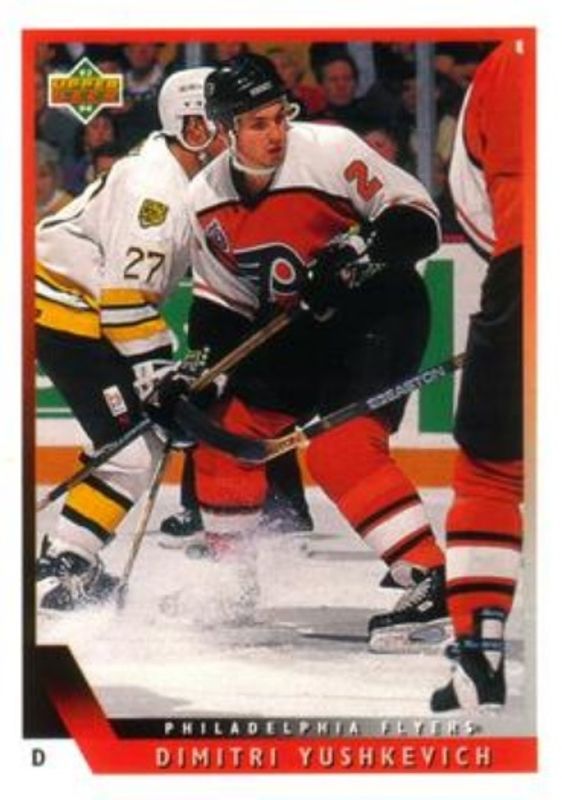 The Dimitri Yushkevich 1993 Upper Deck #127 Base card is 1 of 2 Dimitri Yushkevich's card variations in the 1993 Upper Deck set being tracked by Sports Card Investor, including SP.