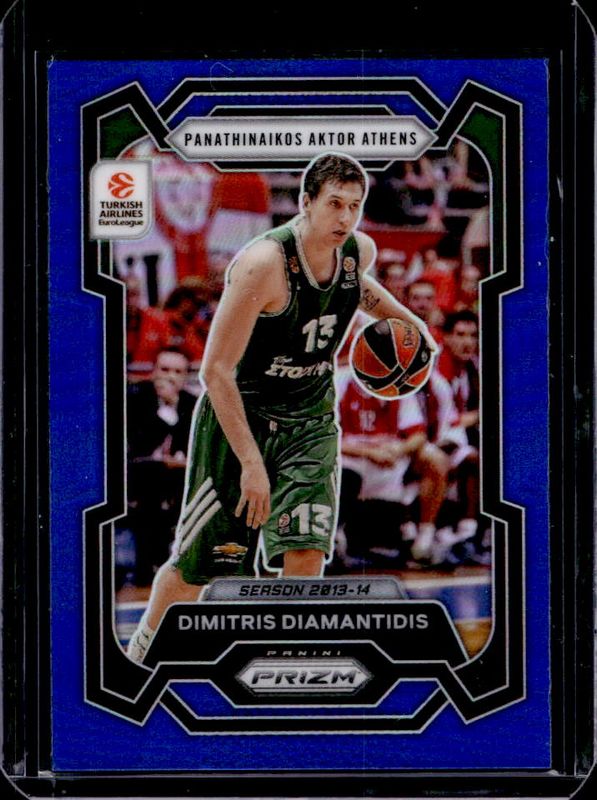 The Dimitris Diamantidis 2023 Prizm EuroLeague #96 Blue /199 card is 1 of 22 Dimitris Diamantidis' card variations in the 2023 Prizm EuroLeague set being tracked by Sports Card Investor, including Base, Basketballs, Green, Ice, and Silver.